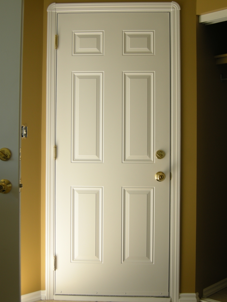 | Refinished doors and baseboard. Airless spray finish with acrylic semi-gloss paint. |